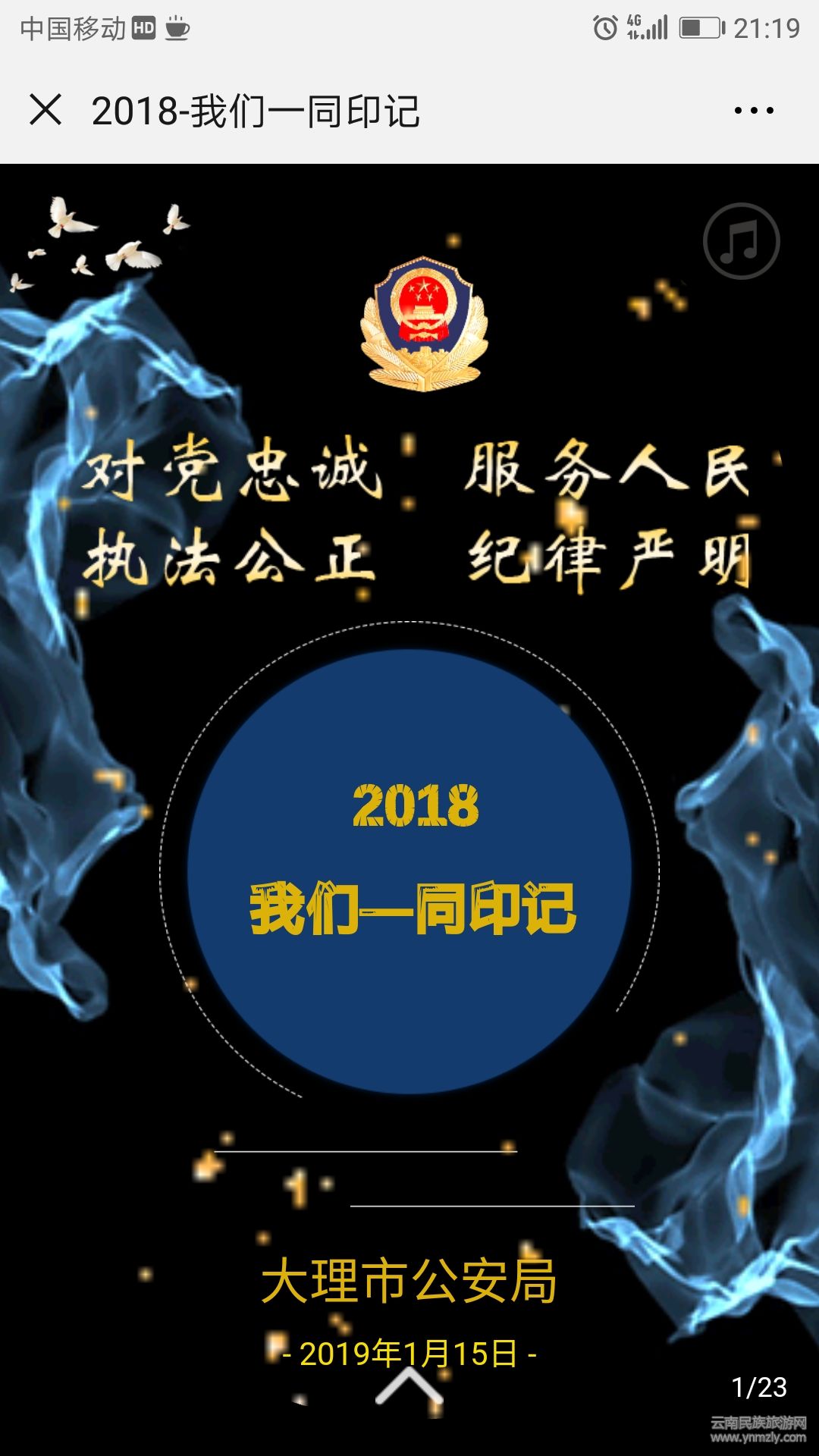 近日,為精心策劃好2018年度回顧性專題宣傳工作,大理市公安局新聞辦民警把新媒體作為公安宣傳優(yōu)先發(fā)展方向,緊扣掃黑除惡、重大任務安保、平安建設攻堅和過硬隊伍建設5個工作重點,強化宣傳策劃,利用業(yè)余時間自學,創(chuàng)新采取制作H5形式,推出圖文聲并茂、感染力強的作品【2018-我們一同印記】;群眾通過手機就可以從多個不同層面認識公安工作,讓公安宣傳工作更加動態(tài)化、可視化,潛移默化,公安形象展示也更加鮮活。