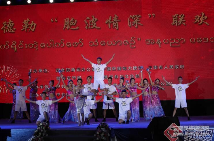 云南德宏金孔雀藝術(shù)團(tuán)、曼德勒文藝團(tuán)體以及當(dāng)?shù)厝A僑聯(lián)袂奉獻(xiàn)了“胞波情深”聯(lián)歡晚會(huì)。“共飲一江水”“彼此情無(wú)限”“明天更美好” 3個(gè)主題章節(jié),融合了中緬兩國(guó)經(jīng)典民族歌舞,為現(xiàn)場(chǎng)觀眾呈現(xiàn)了一場(chǎng)歡快、精彩的文化視聽盛宴,將全天的交流活動(dòng)推向高潮。