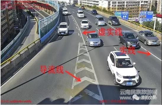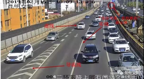 在白色虛線路段可以進(jìn)行越線變道。但很多駕駛?cè)嗽谂R到交叉路口的實(shí)線車道時(shí)才發(fā)現(xiàn)走錯(cuò)了道,這時(shí)想要變道就會(huì)違章被拍處罰。