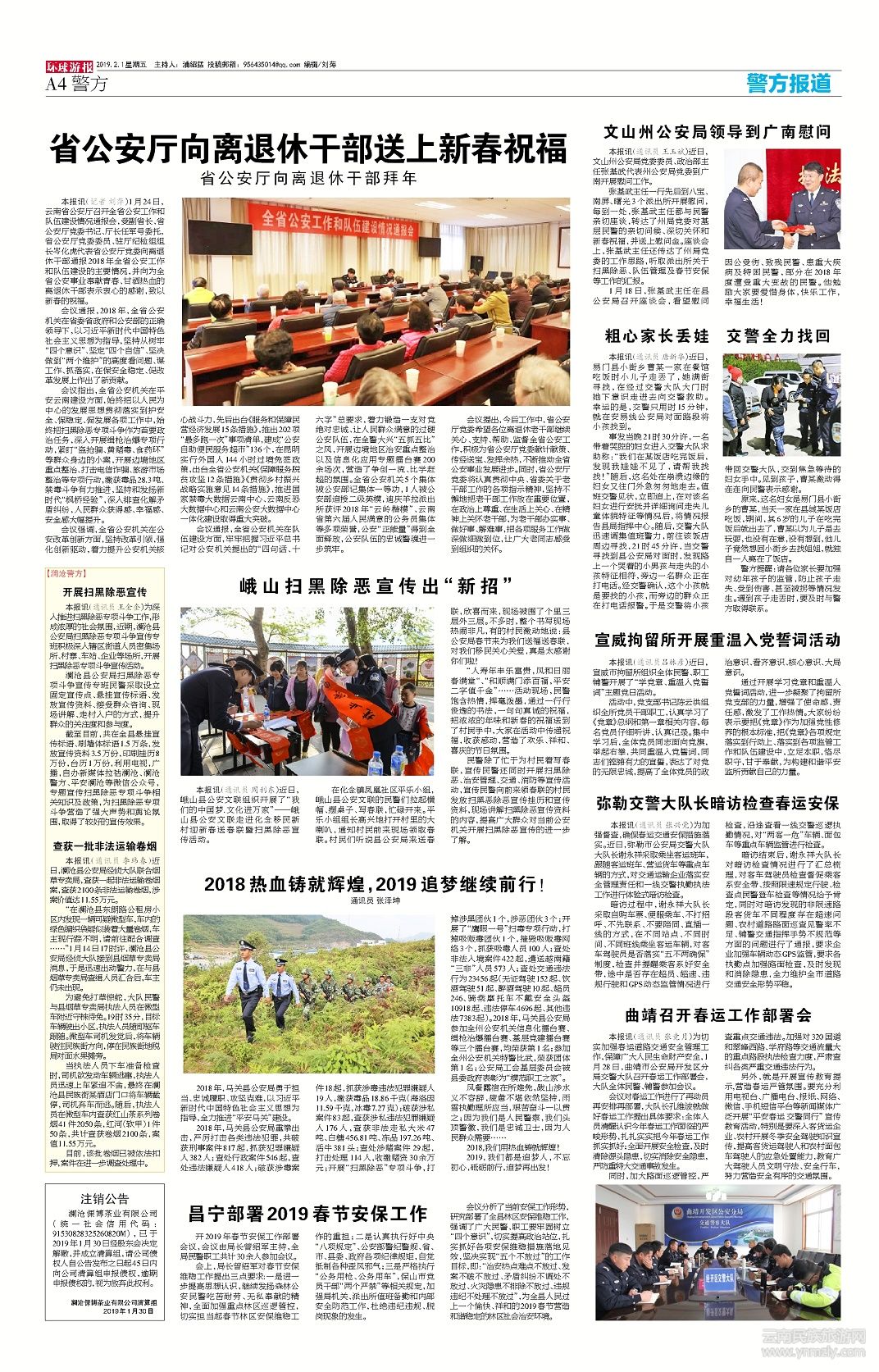 本報(bào)訊(通訊員 周利東)近日,峨山縣公安文聯(lián)組織開(kāi)展了“我們的中國(guó)夢(mèng).文化進(jìn)萬(wàn)家”——峨山縣公安文聯(lián)走進(jìn)化念移民新村迎新春送春聯(lián)暨掃黑除惡宣傳活動(dòng)。