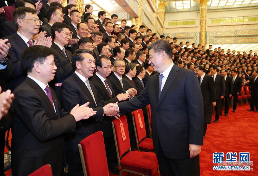 2月20日,黨和國(guó)家領(lǐng)導(dǎo)人習(xí)近平、李克強(qiáng)、栗戰(zhàn)書(shū)、汪洋、王滬寧、趙樂(lè)際、韓正等在北京人民大會(huì)堂會(huì)見(jiàn)探月工程嫦娥四號(hào)任務(wù)參研參試人員代表。 新華社記者鞠鵬攝