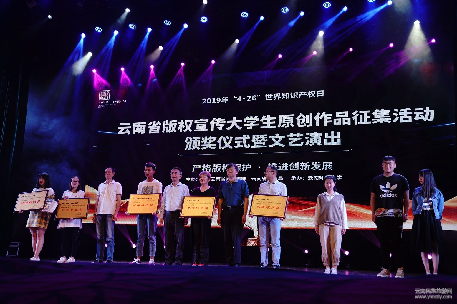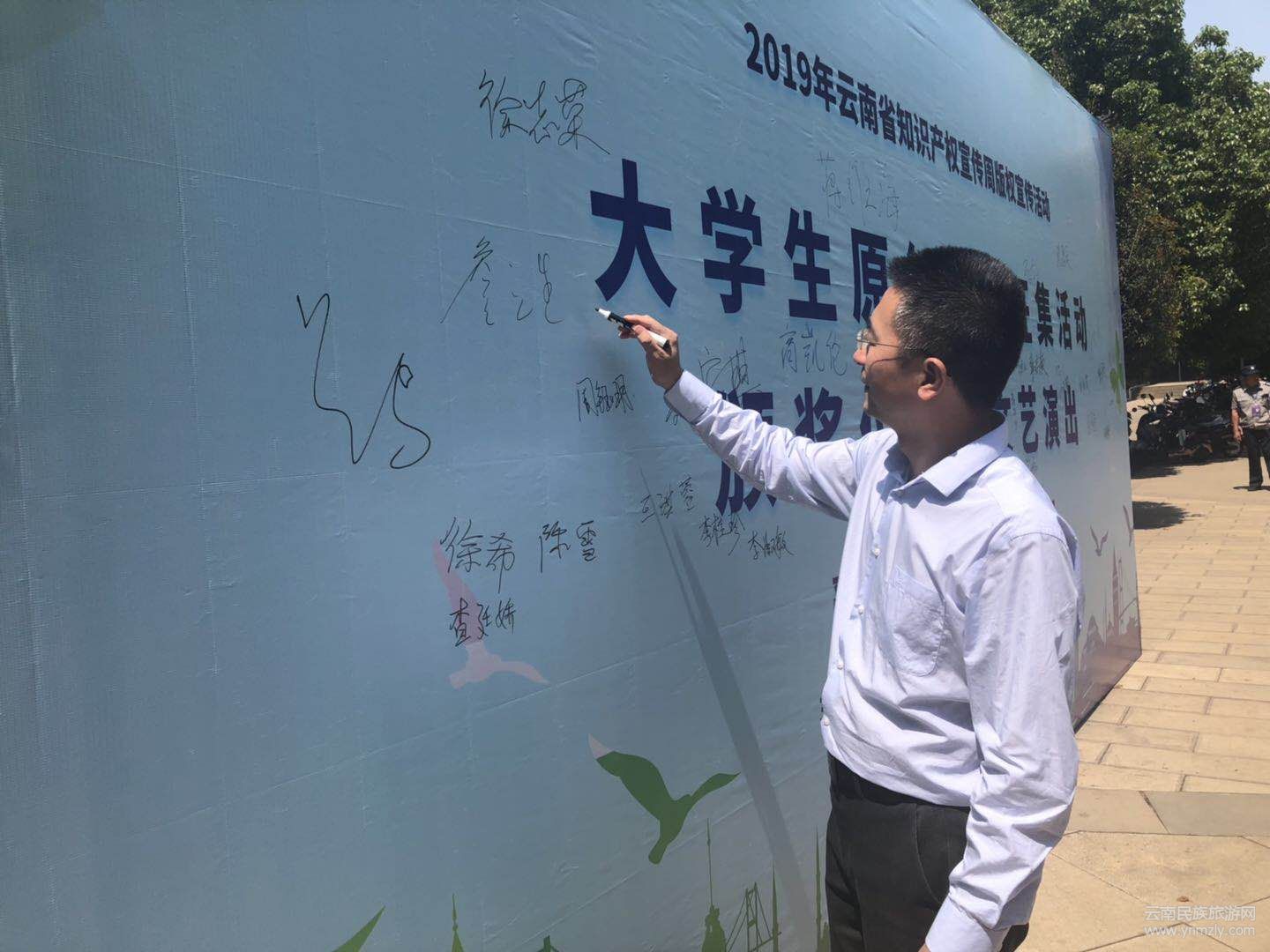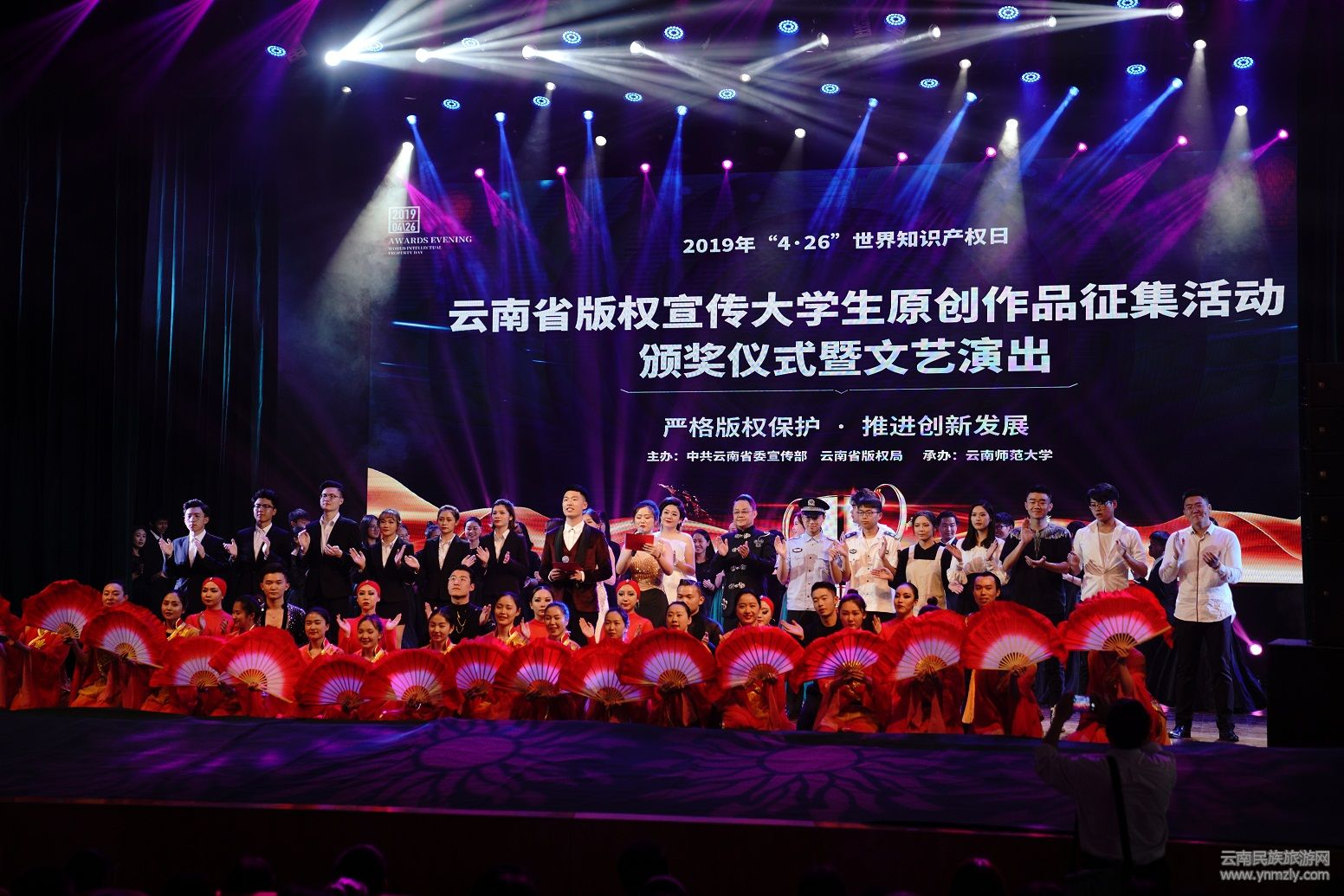 4月26日,由中共云南省委宣傳部、云南省版權(quán)局主辦,云南師范大學(xué)承辦,云南天之悅文化傳播有限公司協(xié)辦的,云南省知識(shí)產(chǎn)權(quán)宣傳周版權(quán)集中宣傳活動(dòng),主會(huì)場(chǎng)設(shè)置在云南師范大學(xué),各州市分會(huì)場(chǎng)也同期舉行,在云南師范大學(xué)明德樓5號(hào)樓演播廳還舉辦了“2019年云南省知識(shí)產(chǎn)權(quán)宣傳周版權(quán)宣傳活動(dòng)——大學(xué)生原創(chuàng)作品征集活動(dòng)頒獎(jiǎng)儀式暨文藝演出”。活動(dòng)評(píng)選出省內(nèi)外35所高校的大學(xué)生獲獎(jiǎng)原創(chuàng)作品126件。省委宣傳部版權(quán)管理處、省委高校工委、云南師范大學(xué),云南藝術(shù)學(xué)院、云南省文化市場(chǎng)綜合行政執(zhí)法總隊(duì)、中國(guó)移動(dòng)云南公司工作人員約500余人參加活動(dòng)。