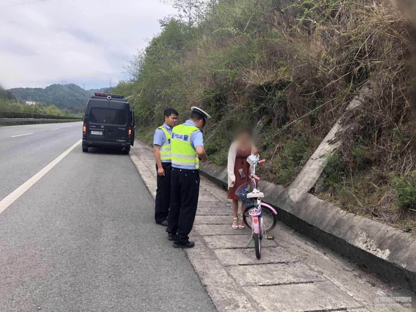 4月22日,保山市公安局交警支隊(duì)保騰高速公路交巡警大隊(duì)民警開(kāi)展巡邏工作時(shí),遇到一在高速公路騎自行車(chē)的女子。