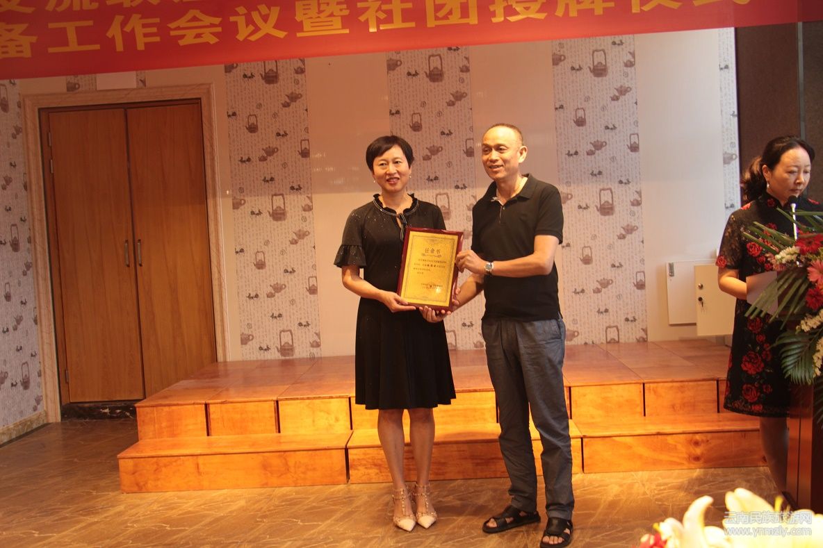 隨后,在熱烈的掌聲中聯(lián)誼會(huì)各社團(tuán)代表紛紛上臺(tái)授牌,并向聯(lián)誼會(huì)各社團(tuán)負(fù)責(zé)同志頒發(fā)聘書。各社團(tuán)負(fù)責(zé)同志還紛紛上臺(tái)交流接下來的工作計(jì)劃,商討慶祝建國70周年系列活動(dòng)籌備事宜。