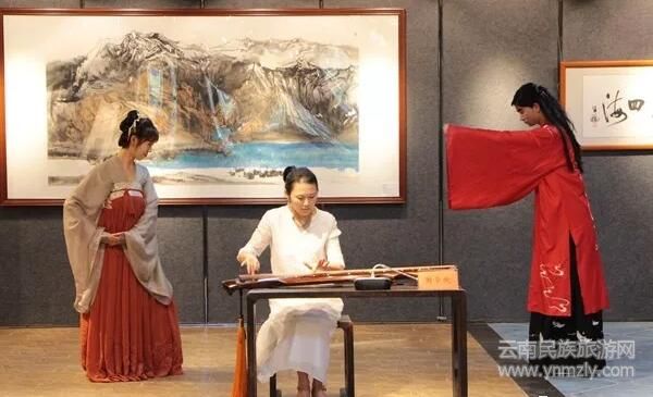 在現(xiàn)場(chǎng)國學(xué)院成員彈奏了音色優(yōu)美的古箏曲,兩個(gè)穿著漢民族的傳統(tǒng)服飾猶如不食人間煙火的仙女和仙子緩緩的走向現(xiàn)場(chǎng)的嘉賓,展示我國華夏的璀璨文明。
