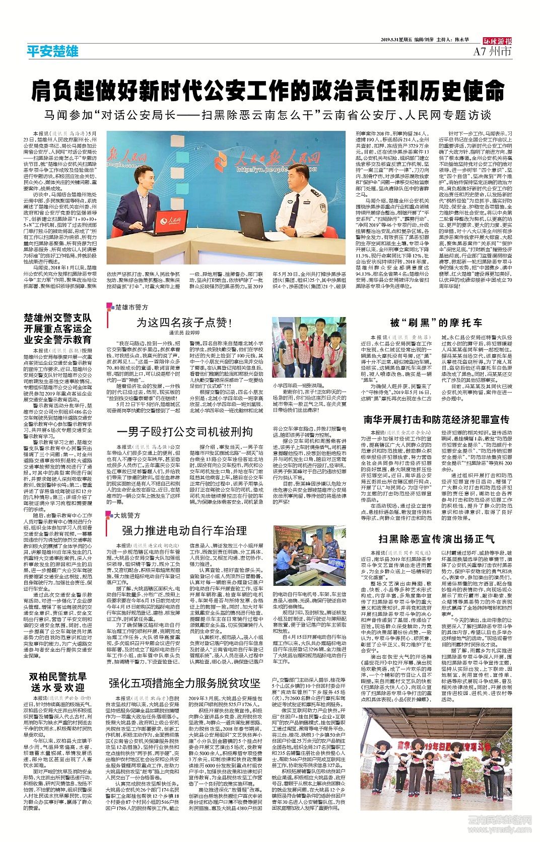 本報訊(通訊員 高海濤)5月23日,楚雄州人民政府副州長、州公安局黨委書記、局長馬聞參加云南省公安廳、人民網(wǎng)“對話公安局長——掃黑除惡云南怎么干”專題訪談節(jié)目,就“楚雄州公安機關(guān)掃黑除惡專項斗爭工作成效及經(jīng)驗做法”進(jìn)行專題訪談,積極回應(yīng)社會關(guān)切、民眾關(guān)心、媒體關(guān)注的關(guān)鍵問題、重要案件、戰(zhàn)果成效。