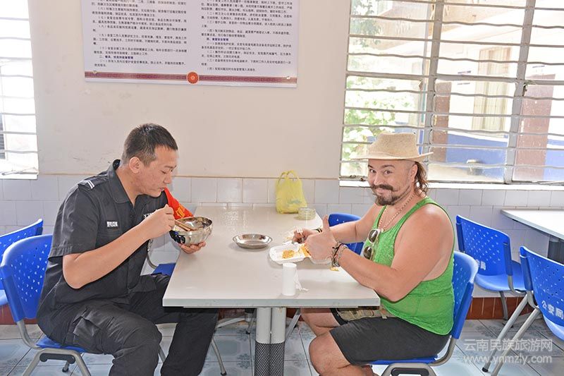 在用簡單的英語交流后,得知該人為俄羅斯人,名為OLEH PETROV,從老撾萬象方向來,經(jīng)磨憨口岸入境,在聯(lián)系峨山縣公安局出入境管理大隊(duì)查驗(yàn)了護(hù)照信息后,確認(rèn)證件合法有效。因時(shí)至凌晨,民警便找來鋪蓋,安排其在值班室睡下,5月24日上午,民警帶領(lǐng)該俄羅斯籍男子前往民政局咨詢相關(guān)救助政策,得到了一張車票及現(xiàn)金救助。12時(shí)許,民警為OLEH PETROV送上了熱騰騰的飯菜和水,在飽餐一頓后,民警將其送至客運(yùn)站踏上了旅途。