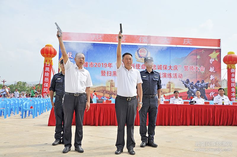 本報訊(記者 陳永華 通訊員 馬超)7月4日上午10時,楚雄市2019年“踐行新使命、忠誠保大慶”誓師大會暨掃黑除惡專項斗爭實戰(zhàn)演練在楚雄州文化中心廣場舉行。楚雄州人民政府副州長、州公安局局長馬聞出席大會并觀摩演練。