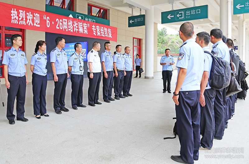 本報訊(通訊員 欒進)7月23日16時40分,伴隨著急促的鳴笛聲,由廣州南站至楚雄站的動車緩緩駛?cè)胝九_,車門打開,英勇威武的姚安“6·26網(wǎng)絡(luò)詐騙案”專案組民警押解著5名電信網(wǎng)絡(luò)詐騙犯罪嫌疑人走出車廂,站臺上瞬間響起熱烈的掌聲……楚雄州公安局黨委委員、副局長戚玉剛率州局相關(guān)部門、姚安縣公安局主要領(lǐng)導(dǎo)在站內(nèi)整齊列隊,歡迎姚安“6·26網(wǎng)絡(luò)詐騙案”專案組戰(zhàn)友凱旋歸來。