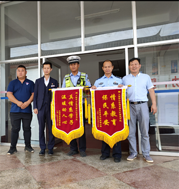 云南民族旅游網(wǎng)訊(通訊員 楊駿)9月12日上午,大理市海東新區(qū)北附墨弦書院實(shí)驗(yàn)小學(xué)安全教育處主任將兩面錦旗送到大理市公安局交警大隊(duì)海東中隊(duì),感謝交警長(zhǎng)期以來(lái)全力維護(hù)校園周邊交通秩序,保障全體師生出行安全。