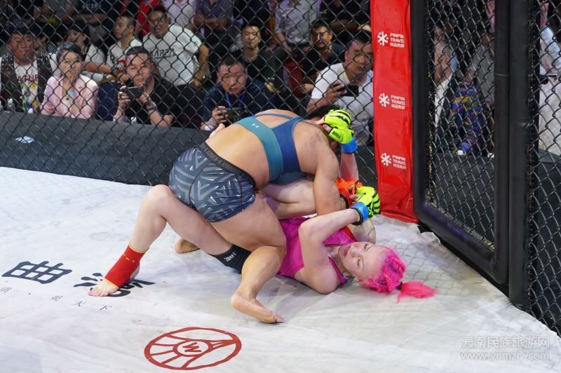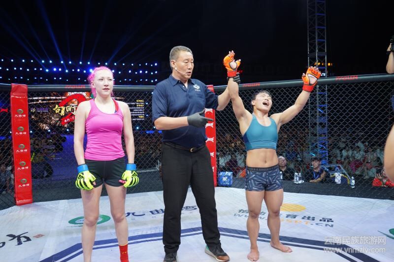 激動人心的壓軸賽是第八場,中國MMA新星廣南“鐵姑娘”嚴(yán)啟慧對戰(zhàn)俄羅斯選手莉莉亞。莉莉亞來自“戰(zhàn)斗民族”的俄羅斯,大賽經(jīng)驗(yàn)豐富,出手果敢,尤其以詭異嫻熟的腿法稱霸拳壇,在備戰(zhàn)過程中,嚴(yán)啟慧與其團(tuán)隊(duì)精心研究戰(zhàn)術(shù),針對性的進(jìn)行訓(xùn)練。比賽一開始,“鐵姑娘”便發(fā)動猛烈進(jìn)攻,一頓拳腿組合,很快在籠邊拿到斷頭臺把位,一頓膝擊組合攻擊,相當(dāng)給力。莉莉亞主動選擇進(jìn)入地面,但被嚴(yán)啟慧壓制在地面,遭到不少砸擊。嚴(yán)啟慧又是打出一波連擊,打摔結(jié)合的很好,將對手摔倒后,牢牢壓制地面,拳肘不斷砸在對手身上。在打擊數(shù)上,比分遙遙領(lǐng)先。最后一個回合,沮喪的莉莉亞完全失去了斗志,在籠邊遭受更多打擊后,裁判眼見莉莉亞毫無還手表現(xiàn),便終止了比賽。在第三回合,3分48秒,嚴(yán)啟慧取得獲勝。現(xiàn)場尖叫聲不斷,掌聲經(jīng)久不息。