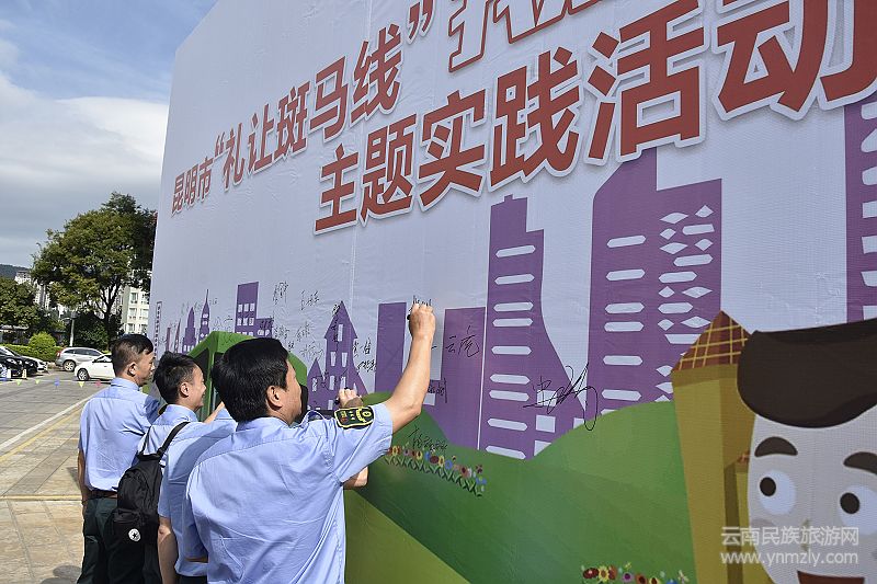 期間,組織開展了“禮讓斑馬線·你禮讓我點贊”主題實踐活動簽名儀式。來自昆明市公安局交通警察支隊、昆明公交集團有限責(zé)任公司、昆明出租汽車協(xié)會及社區(qū)近200余名文明交通工作者和文明交通志愿服務(wù)工作者代表先后進行了簽名,并作出文明交通的倡導(dǎo)和承諾。