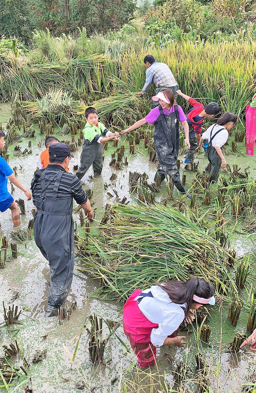 金秋十月,元陽(yáng)梯田的稻谷基本收割完畢,但為了此次研學(xué)旅行,在多方協(xié)調(diào)下,為小記者們留了一塊未收割的稻田,這是一個(gè)小記者完全放松自我和家長(zhǎng)互動(dòng)的環(huán)節(jié),因?yàn)榈咎锢锊粌H有稻谷,還有成群的稻花魚(yú),家長(zhǎng)們除了帶小記者體驗(yàn)收割稻谷外,還有一項(xiàng)重要任務(wù),就是進(jìn)行抓稻花魚(yú)比賽。金燦燦的稻田里,一陣陣歡聲笑語(yǔ)響徹田間,一條條肥美的稻花魚(yú)一躍而起,泥巴飛濺,小記者們從未有過(guò)的體驗(yàn),植入了他們的童年,家長(zhǎng)們也拾起了那些年的童趣。