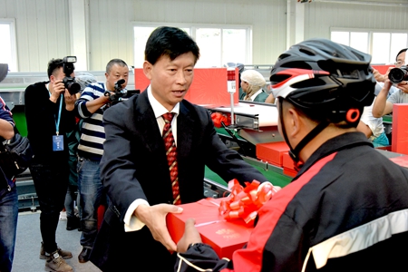 隨后,昭通市委書記楊亞林與昭通市人民政府市長郭大進(jìn)等領(lǐng)導(dǎo)一起見證 “昭陽紅”第一箱蘋果的正式下線。
