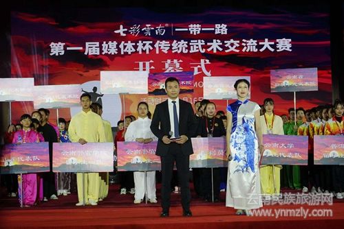 11月16日,“七彩云南·一帶一路”第一屆媒體杯傳統(tǒng)武術(shù)交流大賽即在七彩云南·古滇名城正式開賽,著名體育主持人黃健翔與云南省知名主持人顧姣姣點燃了現(xiàn)場。