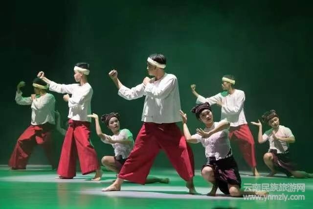 淶階恩賽·女創(chuàng)拳,是由女子首創(chuàng),由名叫階恩賽的武士發(fā)揚(yáng)光大,所以稱之為“淶階恩賽·女創(chuàng)拳”,至今已經(jīng)傳至第十代傳人。這套拳法流傳于耿馬自治縣孟定鎮(zhèn),曾作為歷代孟定傣族土司的練兵拳法,有著嚴(yán)格的拜師儀式和祭祀內(nèi)容,有著系統(tǒng)的教學(xué)套路和程序,一般以7天為學(xué)期,教學(xué)內(nèi)容以徒手四門步、八望拳,四門跪式拳,八望跪式拳,火花拳為基礎(chǔ),漸進(jìn)進(jìn)行傣刀、傣棍等內(nèi)容。舞蹈《淶階恩賽·女創(chuàng)拳》以傳統(tǒng)武術(shù)套路拳法為基礎(chǔ),運(yùn)用現(xiàn)代編舞手法,融合中國舞的技術(shù)技巧,將這項(xiàng)古老的傣族拳法藝術(shù)呈現(xiàn)于舞臺(tái)。