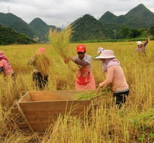 移步回到游客中心,已是正午時分,草草飽食了車上自備的干糧,又急匆匆趕往八寶壩子,準備去拍拍稻農打谷子的場面。