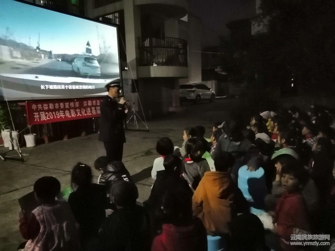 11月13日晚,彌勒市公安局交警大隊(duì)“美麗鄉(xiāng)村安全行、電影下鄉(xiāng)進(jìn)萬村”活動走進(jìn)彌陽鎮(zhèn)祿豐村委會雨舍小學(xué),在學(xué)校設(shè)置放影臺,該校300余名師生和附近100余名群眾參與觀影活動。