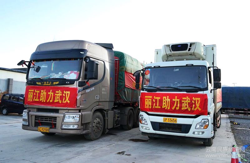 2月11日早上8:30,麗江市籌集到的共計325噸土豆、蔬菜、豬肉、水果(沃柑)等生活物資,分別在麗江(古城、玉龍、寧蒗籌措的物資)、永勝、華坪三地同時舉行發(fā)車儀式運往武漢,送上麗江人民的一份愛心。