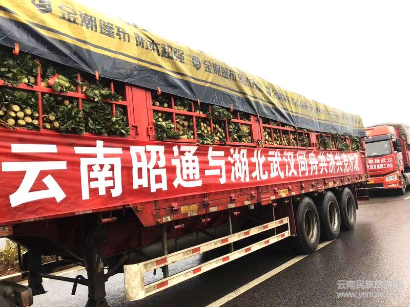 1月31日清晨,裝載著20噸蘿卜、大白菜、萵筍等綠色無公害蔬菜,同時也滿載著17萬彝鄉(xiāng)各族人民的牽掛和支持的大卡車,從玉溪市峨山縣城出發(fā)馳援武漢,無償捐贈給武漢市民。