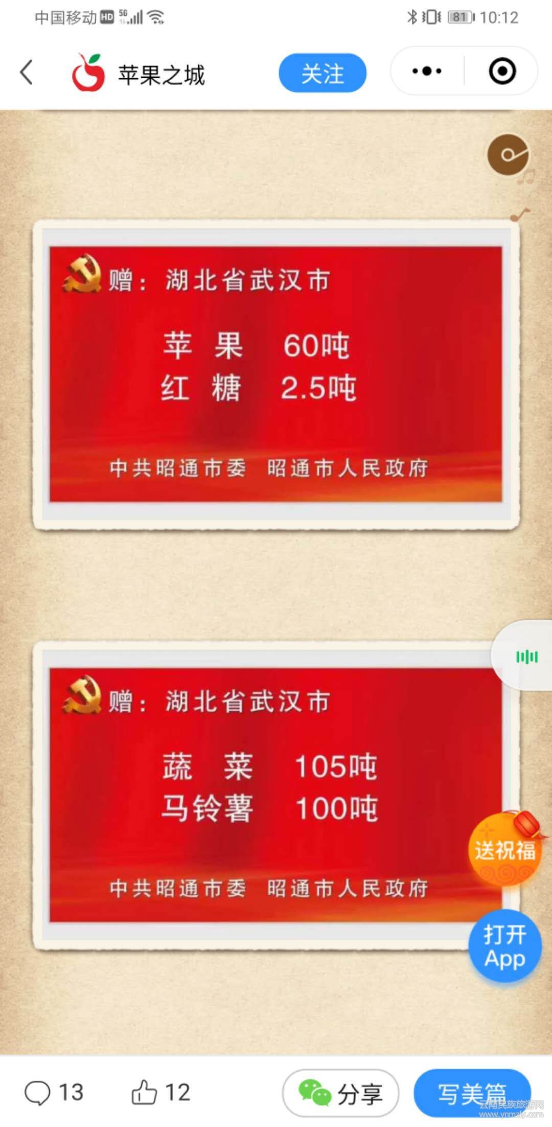 2月10日上午,滿載昭通革命老區(qū)烏蒙山人民捐贈的230多噸萍果、紅糖和洋芋等蔬菜的二十多輛大卡車冒雨從昭通出發(fā),給湖北人民送去深深的情濃濃的愛。你看云南人有多板扎!
