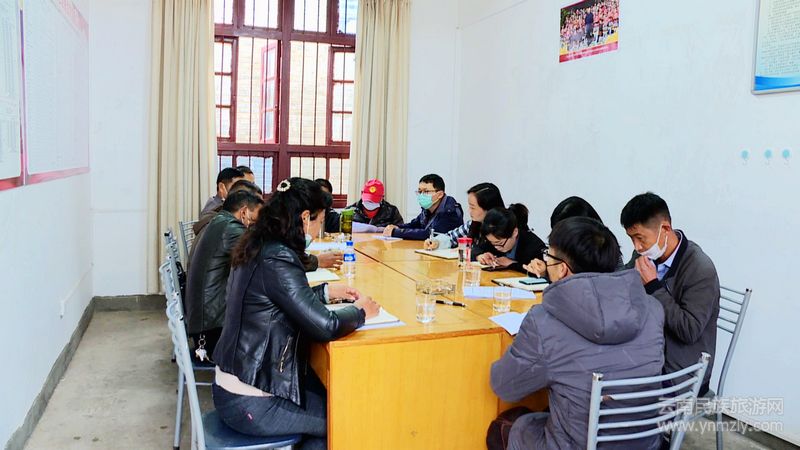 金雞鄉(xiāng)黃毛社區(qū)村委會是省級建檔立卡深度貧困村,全村有1019戶3908人,其中建檔立卡貧困戶有240戶1077人。今年44歲的張軍妹于2018年4月當(dāng)任黃毛社區(qū)黨總支書記。早上八點,張軍妹準(zhǔn)時來到村委會會議室,與村兩委和駐村工作隊員召開早例會,安排一天的工作。散會后,張軍妹便和另外兩名駐村工作隊員一起到貧困戶家中走訪。