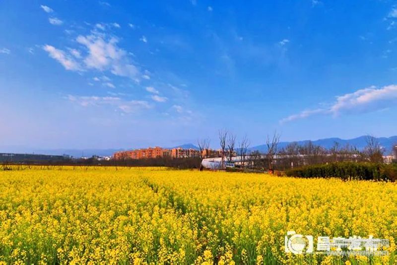 農(nóng)田的主角,是金燦燦的油菜。這種對(duì)于農(nóng)民來(lái)說(shuō)最普通不過(guò)的作物,是昌寧城鎮(zhèn)、村莊從冬到春最美的裝點(diǎn)。這油菜,與冬天鄉(xiāng)村山地里的小油菜不同,是種在田里的大油菜。它們已與小油菜約定俗成,絕對(duì)不會(huì)在冬天去搶風(fēng)頭,而是默默地忍過(guò)嚴(yán)冬笑迎春天。