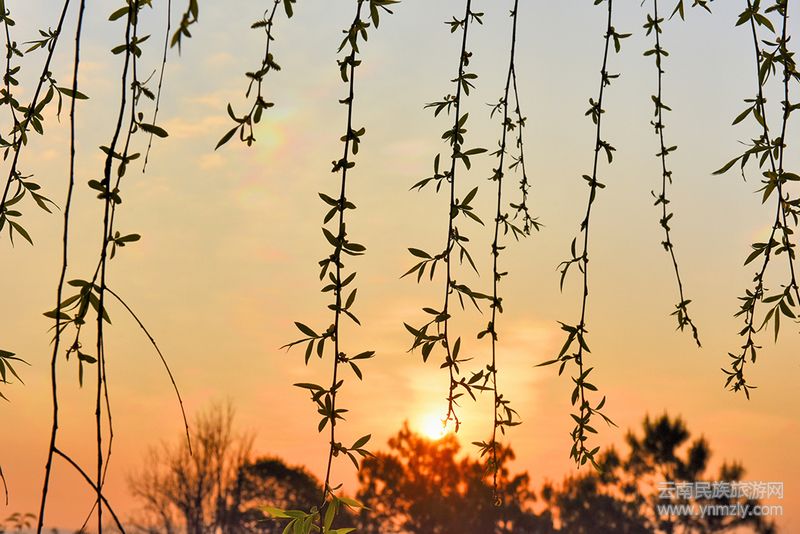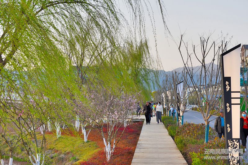 彩毯中間,是一條蜿蜒的綠帶。那是被昌寧人稱為母親河的右甸河。春天來(lái)了,等待了一個(gè)冬天的柳樹(shù)迫不及待地吐出了新芽,在河水的叮咚聲里,吟誦著唐代詩(shī)人筆下的春:“碧玉妝成一樹(shù)高,萬(wàn)條垂下綠絲絳。 不知細(xì)葉誰(shuí)裁出,二月春風(fēng)似剪刀。”