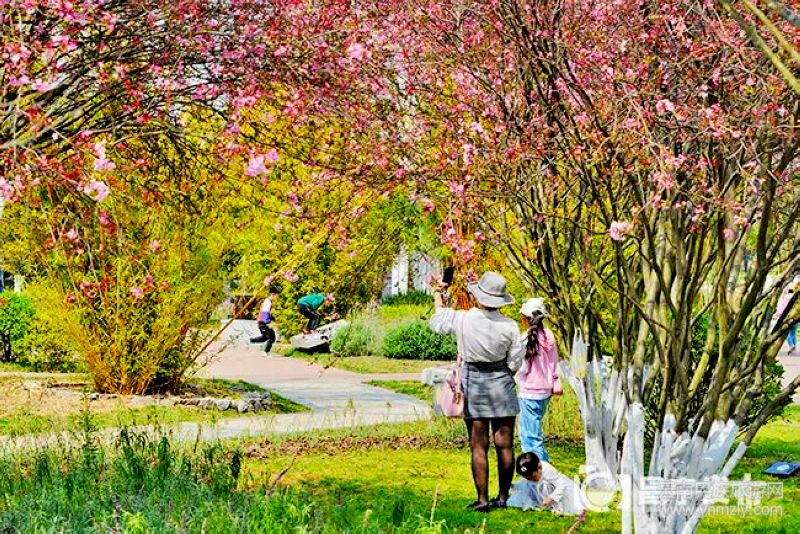 最受歡迎的,還是垂絲海棠,休閑的時(shí)間里,大人、孩子都閑不住了,紛紛走出家門,一進(jìn)公園就看到了那一樹(shù)樹(shù)一團(tuán)團(tuán)粉。于是,你拿出手機(jī)美美地來(lái)個(gè)自拍,我拉住花枝聞聞海棠無(wú)香是不是真,她在花的周圍快樂(lè)享受春日暖陽(yáng),用燦爛的笑容與春天比美。的確,什么也阻擋不住季節(jié)的腳步,什么也阻擋不住人追尋和享受美好。