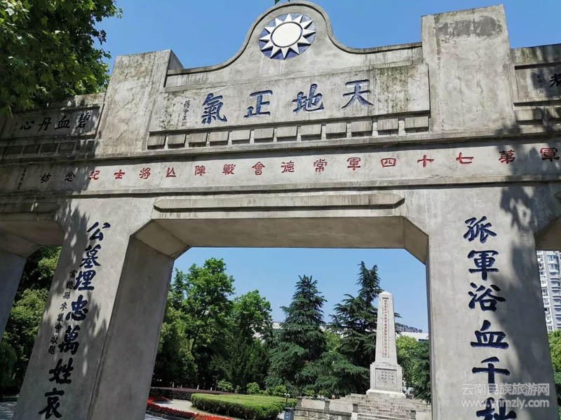 進(jìn)常德城后,因?yàn)楫?dāng)年戰(zhàn)場的遺跡已難以找尋,我們徑直奔往當(dāng)年常德會戰(zhàn)結(jié)束后74軍軍長王耀武將軍主持建造的烈士公墓,公墓的正面是一座高大的三門紀(jì)念牌坊,正門上方是王耀武所題“常德會戰(zhàn)陣亡將士紀(jì)念坊”橫匾,正中是蔣介石所題“天地正氣”,左側(cè)為陳誠所題“碧血丹心”,右側(cè)為白崇禧所題“旗常炳耀”。背面及另一紀(jì)念塔也有眾多大佬題字。一座紀(jì)念牌坊,匯集了當(dāng)時眾多重量級人物的題字,可見此役在當(dāng)時政府和國人心中的地位。