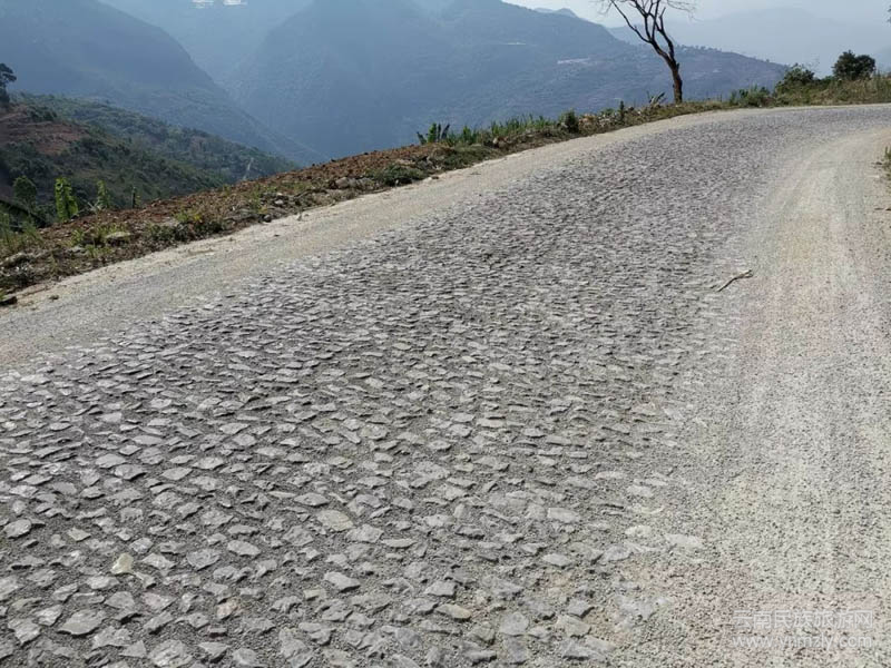 在保存完好的一段著名的塘石路路面,我們下了車,仔細(xì)地端詳著歷八十年風(fēng)雨滄桑而不改舊樣的滇緬公路,路面的設(shè)計恐怕為目前國內(nèi)所僅有,石頭被深埋地下,而露出地面的是整齊劃一的小方石,崇山峻嶺間,既可防止汽車輪胎打滑,又可避免雨水沖垮了路面。