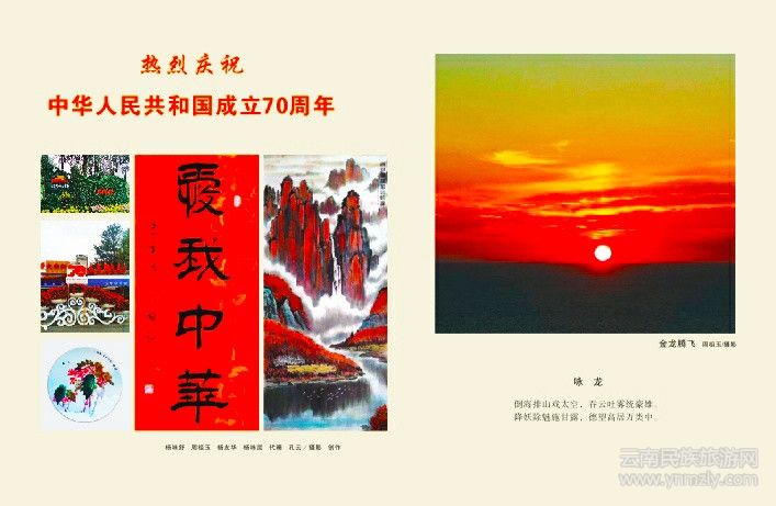 此畫冊系為慶祝新中國成立70周年而特別推出,該書收錄了中書協(xié)教授兼中楷藝研院副院長孫文佳、中國高級美術工作者高丹鳳、作家書法家攝影家周祖玉等37位作者的詩書畫和攝影作品1000多幅(首),絕大多數(shù)都屬上乘之作。如錢根余的行書《天耀中華》、楊詠昆的隸書《愛我中華》、代晴的國畫《綠水青山》、徐忠禮的工筆畫《錦上添花》周祖玉的影配詩《金龍騰飛》等一大批作品深受藏家和消費者喜愛。