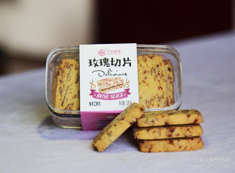 4、玫瑰切片/曲奇餅干:優(yōu)選云南高原富硒有機重瓣紅玫瑰鮮花瓣、優(yōu)質(zhì)進口發(fā)酵奶油精心制作,其芳香濃郁,酥脆營養(yǎng),給您帶來一份源自高原玫瑰谷的清甜問候。