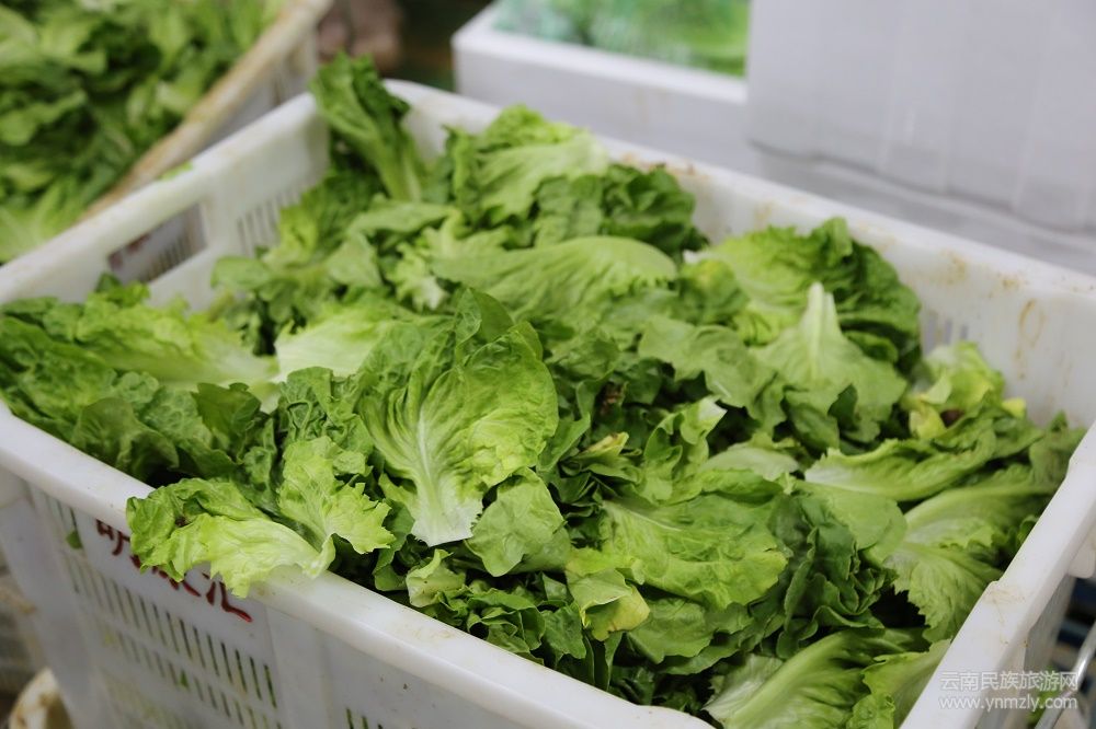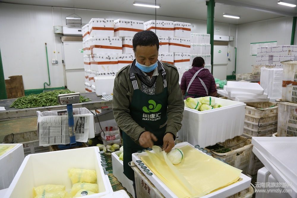 明康匯生態(tài)農(nóng)業(yè)集團(tuán)云南瀘西種植有限公司的加工車間里,工人們在流水線般地忙碌著:分揀、剔除、包裝、進(jìn)箱……這些裝箱后的蔬菜,將第一時(shí)間通過拖車和冷鏈車發(fā)往北上廣和全國各地。