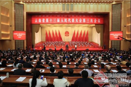 5月10日,云南省第十三屆人民代表大會第三次會議在海埂會堂隆重開幕。會議主席團常務主席、第一次全體會議執(zhí)行主席陳豪主持會議,省長阮成發(fā)代表省人民政府向大會報告工作。