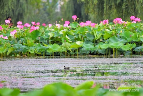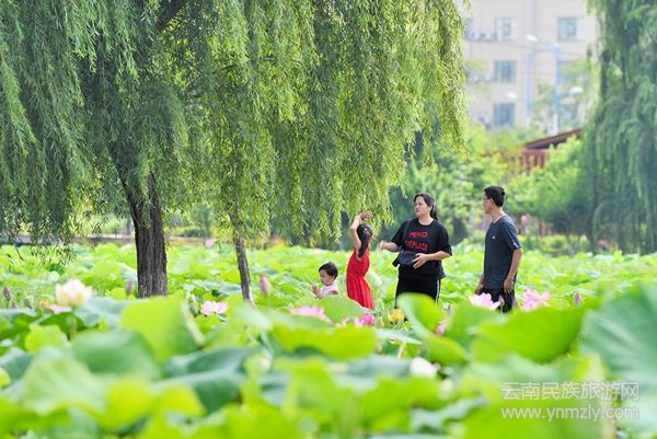 昌寧的荷花,不僅僅在當(dāng)?shù)赜杏绊懀恍┲苓吙h份的人,也會(huì)慕名前來(lái),用半天時(shí)間看看花,然后在昌寧吃一頓飯。這,應(yīng)該是一種最愜意的旅游,實(shí)實(shí)在在地把眼前的茍且活成詩(shī)和遠(yuǎn)方。端午節(jié)上午,荷塘邊來(lái)了一群身著民族服裝說(shuō)著民族語(yǔ)言的人,別看她們年紀(jì)都不小了,但拍花、自拍、互拍卻樣樣都來(lái),每一個(gè)人的臉上都樂(lè)樂(lè)呵呵,玩嗨了還放起音樂(lè)跳起舞唱起歌,在盛開(kāi)的荷花的映襯下,盡情揮灑心中的快樂(lè)。