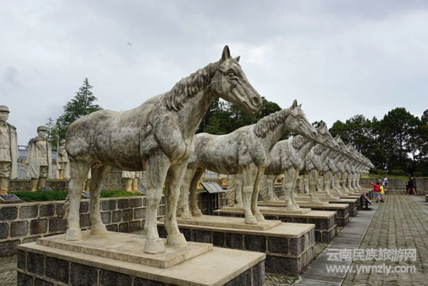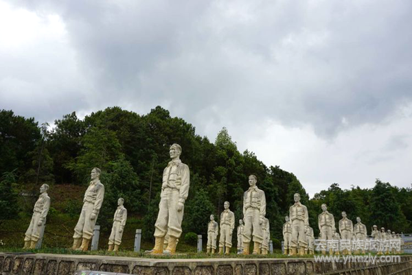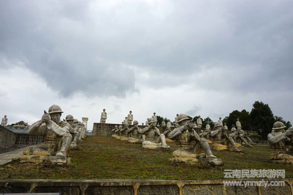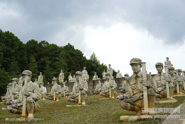 山頂上排列著整齊劃一的幾百尊中國遠征軍雕塑。