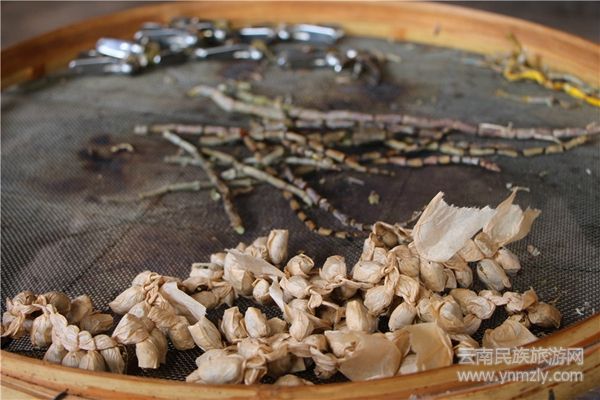 “社會主義呀真正好么,我們又種呀田地么又做草(石斛楓斗),做得黃草(石斛楓斗)么街上賣么,賣得呀金錢么進家了.....”盛夏時節(jié),走進坐落在大山深處的龍山鎮(zhèn)尹兆場社區(qū),淅淅瀝瀝的小雨下個不停,整個村莊水汽氤氳,層層疊疊的山峰云霧繚繞。尋著悠長的山歌聲走去,只見三五成群的村民聚在一起,男女老少圍著一盆炭火、一把篩子,在一把鉗子的輔助下,一根根石斛變成了一個個楓斗,村民們正坐在家中積極賺取“指尖經(jīng)濟”。