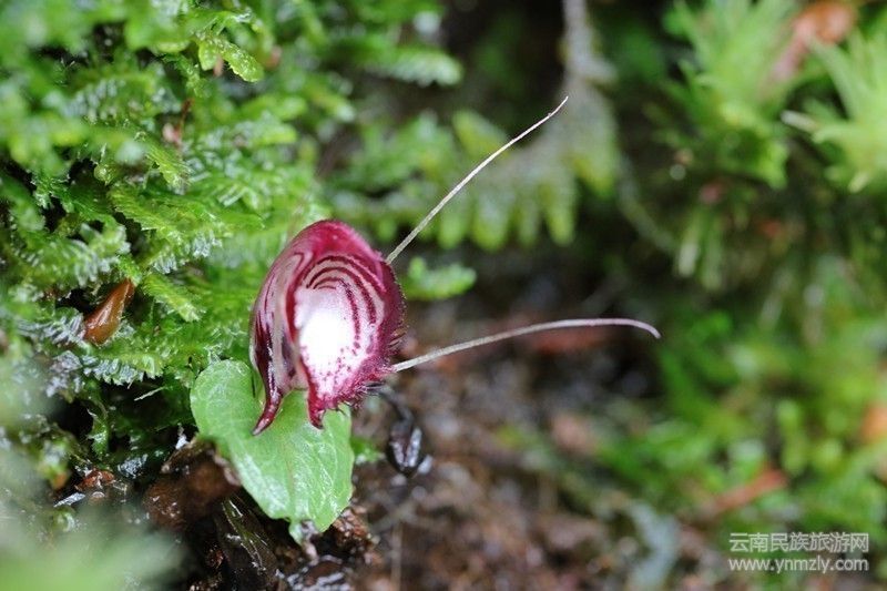 據(jù)科研人員介紹,蘭科鎧蘭屬植物為地生草本,罕見附生,僅有一枚葉、單朵花,整個(gè)植株只有數(shù)厘米高。鎧蘭屬約有150種,主要分布于新幾內(nèi)亞、澳大利亞、太平洋各島,向上經(jīng)東南亞延伸至喜馬拉雅山脈,中國分布有六個(gè)種。此次調(diào)查的喜馬拉雅鎧蘭野外居群分布于兩座小山,沿海拔1790米~1860米的山脊及兩側(cè)山坡分布,主要生長于常綠闊葉林林下苔蘚及落葉層上,通常為幾十株甚至上百株聚集分布,總株數(shù)估計(jì)兩萬余株。科研人員在對其中一座山的喜馬拉雅鎧蘭進(jìn)行調(diào)查時(shí)發(fā)現(xiàn),在海拔1790米~1810米的一片區(qū)域,鎧蘭與喜馬拉雅鎧蘭共同著生于苔蘚及枯木上,但植株較少,約七百余株。