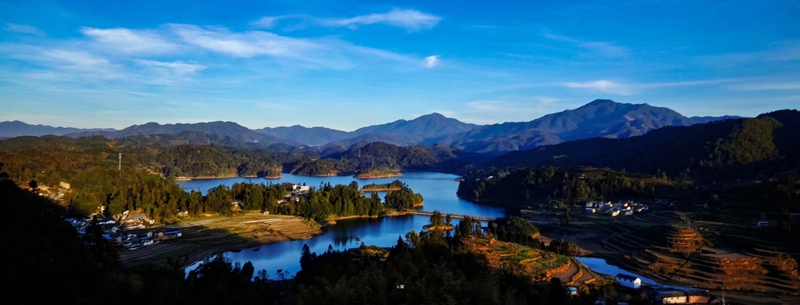 走在湖邊,我不由得羨慕起住在湖邊的蚌渺人來。他們每天都能夠在畫一樣的美景里勞作生息,早晨推開門窗,迎進(jìn)來是滿眼的美景;晚上關(guān)上門窗,送走的是一湖的星光。我想,能在這樣的地方生活一輩子,大概就是古代寄情山水的隱士們追求的隱逸生活吧。這不,陶翁正從對面牽牛荷鋤悠然走來;湖中緩緩劃著竹筏而來的那對夫婦,不就是范蠡和西施嗎。(龍陵縣委宣傳部)