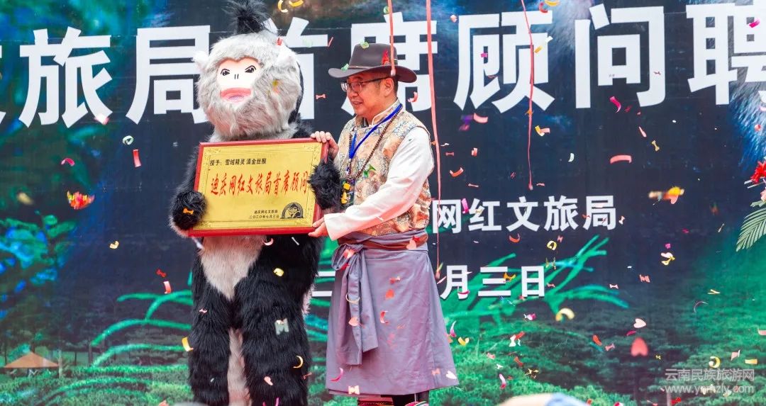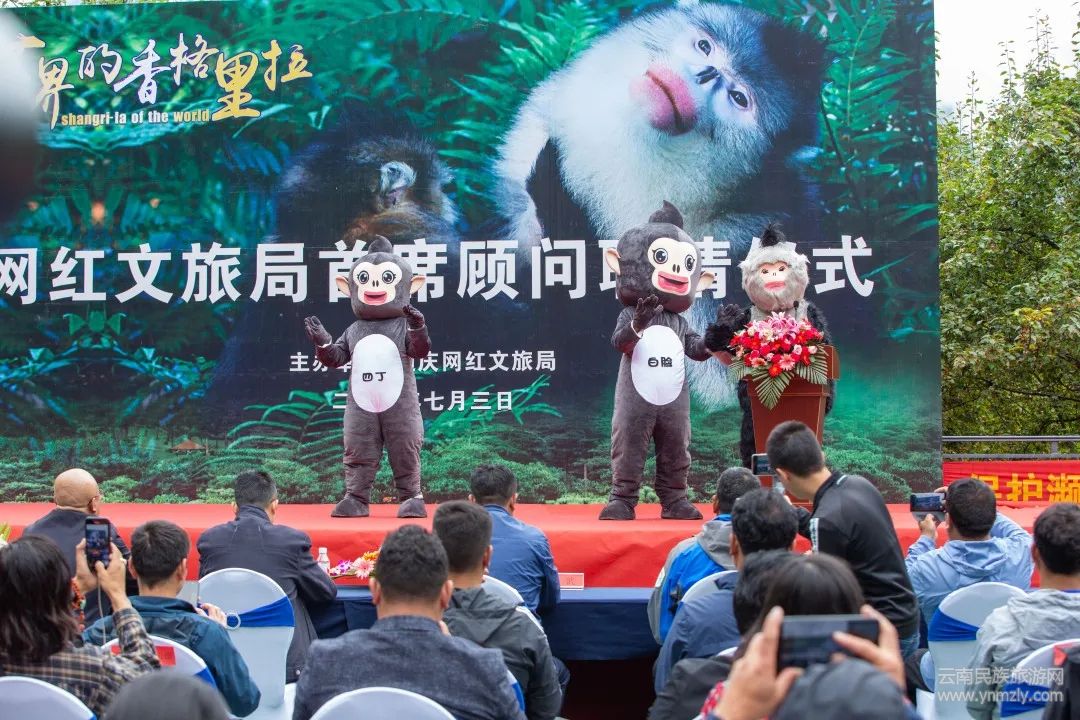 7月3日,在由迪慶州文化和旅游局、迪慶州旅游集團(tuán)主辦的“世界的香格里拉”網(wǎng)紅文旅局首席顧問(wèn)聘請(qǐng)儀式上,可愛(ài)的滇金絲猴多了一個(gè)新身份——“網(wǎng)紅文旅局”首席顧問(wèn)。