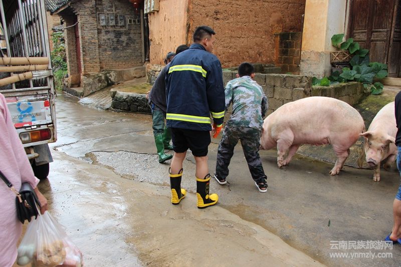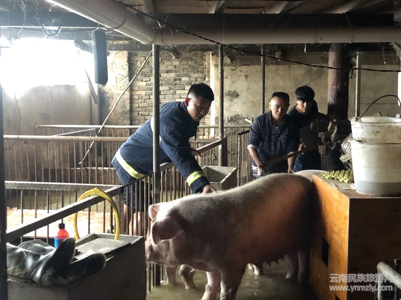 人民需要我,我定不負人民。姚關街組八組戶劉海杰戶、姚關街八組劉海澄戶,積水淹掉了院子,已達沒過膝蓋的高度,開始灌進堂屋。接到群眾求救電話后,這些基層一線干部第一時間趕到了受災群眾家中。派出所民警先蹚過越來越深直至沒過膝蓋的水,疏散了群眾,查看受災情況。緊接著,姚關鎮(zhèn)干部、村干部進到群眾受災的家中,和派出所民警一起,合力將家具家電搬出了積水的房屋。還沒等反應過來,這群人已經(jīng)火速趕往下一戶受災農(nóng)戶姚關街十組李富民戶家中,戶受災嚴重的是豬圈,6頭母豬,還有剛生不久的12頭小豬。李富民妻子急得跺腳,眼里噙著淚水,語無倫次地說:這些豬就這么泡在水里,這可是我們家的命,怎么辦啊?派出所民警、鎮(zhèn)村兩級干部二話沒說猛地鉆進了積水沒過小腿的豬圈里,和著豬糞、豬食的渾水根本阻擋不了他們那顆急切挽救人民群眾生命財產(chǎn)安全的熾熱的心。泡在積水里受驚的豬很難驅趕出來,尤其是其中兩頭懷有小豬,他們想盡辦法,耐心驅趕,無畏無懼,又仔細注意,路滑鋪草,合力將兩百多斤的豬抬進貨車里。費了九牛二虎之力,終于將6頭母豬救出積水中,仔細一看,他們的腿上、腳踝上留下了星星點點的劃傷、擦傷,脫下雨鞋一倒,臭水嘩然而出。受災群眾李富民看著自家那6頭被及時救出的母豬,連忙對著他們說:感謝共產(chǎn)黨,感謝政府,謝謝你們,謝謝了,謝謝!而他們只是靦腆一笑,叮囑受災群眾注意后續(xù)安全,有情況及時聯(lián)系后便走了,留下了一個又一個平凡又高大的背影。