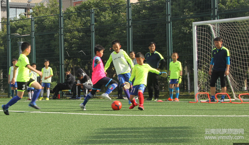 云南民族旅游網(wǎng)訊(記者尹達(dá)天)初冬的昆明,天空湛藍(lán),暖陽(yáng)高照。在昆明市西山區(qū)芳草地國(guó)際學(xué)校的操場(chǎng)上,一群孩子在進(jìn)行足球訓(xùn)練,拉球、踩球、運(yùn)球接力……雖然動(dòng)作有些生澀但絲毫不影響大家的熱情,不管男孩還是女孩都興趣高漲,在愉快氛圍中完成訓(xùn)練內(nèi)容。