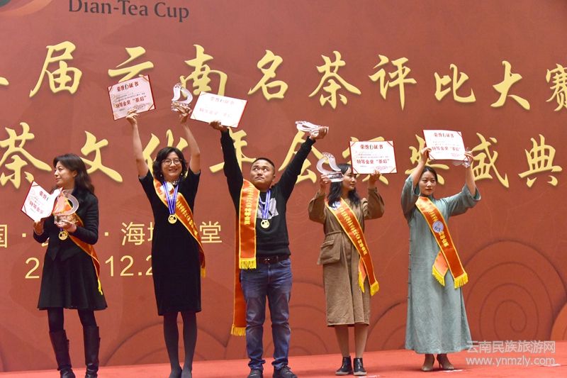 本屆滇茶杯獲得生普組金象獎的是百年鴻記的“云南古樹黃萬”、勐海陳升有限公司的“匠心”并列茶王;熟普組金象獎云南宏好吉茶業(yè)有限公司龍寶茶廠“德澤號”、紅茶組金象獎的是桐頤祥茶葉有限公司“古樹紅”、白茶組金象獎的是正清堂(北京)茶文化交流中心“鯨落天香”;云南省紫昌號茶業(yè)有限公司“易武荒山”、云南海鑫堂茶業(yè)有限公司“易武老樹茶”、云南雙江勐庫冰島古茶樹茶廠“白毫銀針”、云南昌寧紅茶業(yè)集團有限公司“紫氣東來”等品牌獲得本次滇茶杯的特等金獎“茶后”榮譽稱號; 今年本屆滇茶杯第一次出現(xiàn)“白茶王”,紅茶組的金象獎“茶王”也是改革開放40多年以來第二次被封為“滇紅之王”,而“熟普茶王”奇妙的出現(xiàn)了比分相同的并列現(xiàn)象,組委會恒定錄取的76個茶樣和本界滇茶杯特別設(shè)置的24個單項獎以昨天全部出爐,吸引了世界愛好滇茶的所有茶友的目光,本屆滇茶杯有京津冀和粵港奧大灣區(qū)等13個省份的嘉賓和裁判員工蒞臨現(xiàn)場,創(chuàng)造了參賽規(guī)模、出席人數(shù)和 參評質(zhì)量均超往屆,滇茶杯已發(fā)展成為茶迷、制茶師、評茶師的一個盛大節(jié)日,本屆滇茶杯也是2020年中國茶界的收官之作。本屆滇茶杯茶樣獲獎率僅有20%,據(jù)滇茶杯組委會主任劉益成先生介紹:“本屆滇茶杯共收到全省68個產(chǎn)茶縣八大茶類組別共1280個茶樣,占全省97個產(chǎn)茶縣的80%,參評產(chǎn)茶縣比上屆增長了13%,參賽茶樣比上屆814個增加了466個,送樣產(chǎn)茶縣突破80個,本屆滇茶杯賽后首展將于2021年1月6日在昆明雄達茶文化城云茶歷史文件博物館隆重舉行,屆時廣大茶友可零距離一睹金象獎茶王風采”。值得一提的是2020年中華茶文化年會頒獎盛典于昨晚與滇茶杯頒獎晚會同步舉行,意味著滇茶杯和滇茶文化在中國茶文化具有舉足輕重的作用。