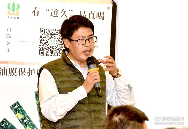 會(huì)上來自北京大學(xué)藥學(xué)碩士、西雙版納華坤生物公司研發(fā)總監(jiān)李正權(quán)先生講解了橡膠樹種子油對(duì)人類健康的幫助和橡膠籽油系列產(chǎn)品介紹。