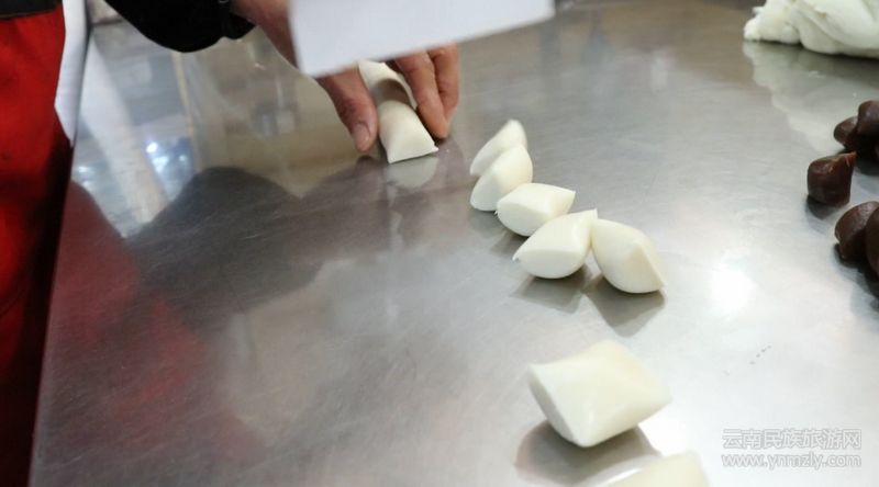 在七零七好運來蛋糕店里,稱面、和面、揉面、切大小均等的劑子、包餡兒、裹芝麻… …蛋糕店的老板娘和工人正忙得不亦樂乎,每一個環(huán)節(jié)都是匠心,且充滿詩意。