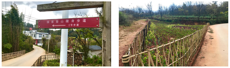 穿過(guò)歌樂(lè)子村,途徑歌樂(lè)子的山地農(nóng)田、1號(hào)觀景亭抵達(dá)漢沖村,該路段全程為鄉(xiāng)村山谷土路,路旁野果眾多。登至觀景亭眼底是郁郁蔥蔥的森林,和錯(cuò)落有致的山間農(nóng)田,豐收時(shí)節(jié)金黃色的麥浪隨山勢(shì)起伏。