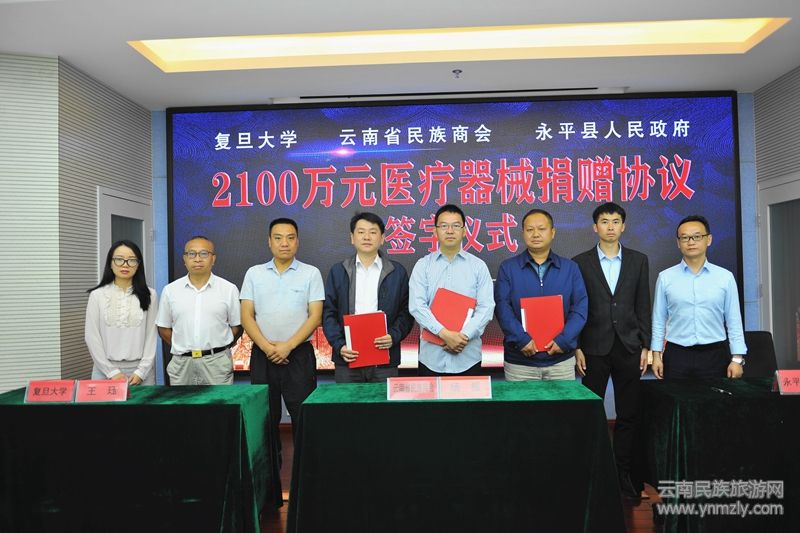 為盡快將總價值2100萬元的彩超、DR、派特云圖、CT等醫(yī)療設(shè)備捐贈到永平縣,緩解永平縣基本公共衛(wèi)生經(jīng)費支出壓力,復(fù)旦大學(xué)駐永平縣定點幫扶干部王玨專程到云南省民族商會簽訂補充協(xié)議。