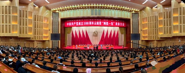 云南民族旅游網(wǎng)訊:6月25日下午,中國共產(chǎn)黨成立100周年云南省優(yōu)秀共產(chǎn)黨員、優(yōu)秀黨務(wù)工作者、先進(jìn)基層黨組織表彰大會(huì)在昆明隆重舉行。會(huì)議強(qiáng)調(diào),要深入學(xué)習(xí)貫徹習(xí)近平新時(shí)代中國特色社會(huì)主義思想和習(xí)近平總書記考察云南重要講話精神,動(dòng)員激勵(lì)全省各級(jí)黨組織和廣大黨員干部,銘記奮斗歷程,擔(dān)當(dāng)歷史使命,匯聚起推動(dòng)云南高質(zhì)量發(fā)展、全面建設(shè)社會(huì)主義現(xiàn)代化的磅礴力量。
