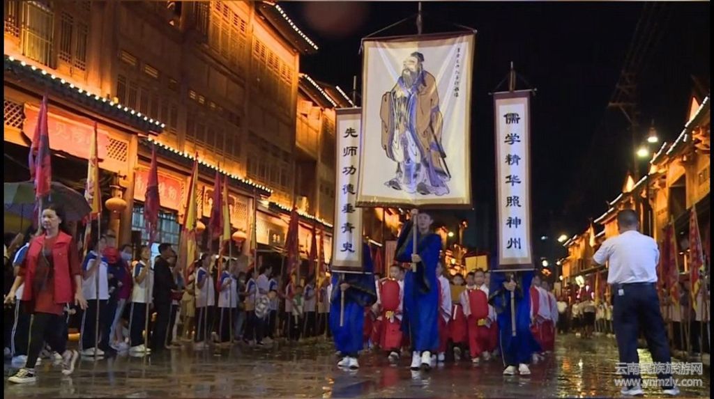 雖然天公不作美,但“相約游古城·緣來在句町”之“恭行拜師禮”系列活動(dòng),仍然引來近萬人游客駐足觀看參與。風(fēng)聲雨聲讀書聲,聲聲入耳。
